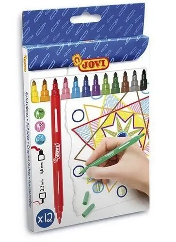 Zestaw prezentuje 12 flamastrów w różnorakich barwach. Charakteryzują się one dwoma końcówkami, dzięki czemu można rysować linie o różnej szerokości.EAN: 8412027028844