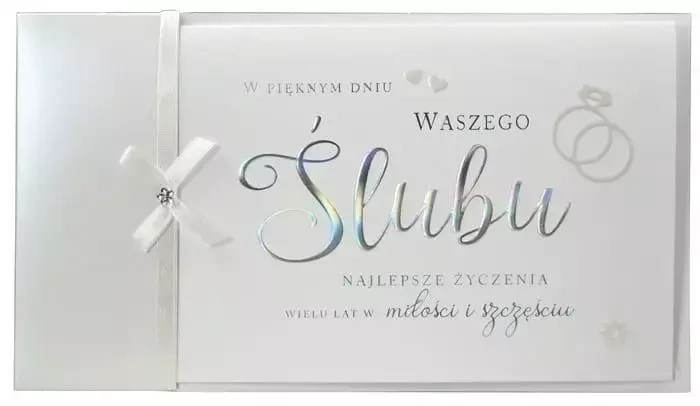 Ta niecodzienna, kwadratowa kartka wyróżnia się swoim nietypowym rozmiarem. Co więcej, zawiera liczne zdobienia, w tym dekoracje ze złotej folii oraz doklejane koraliki, które dodają jej unikalności i elegancji. Idealnie dopasowana koperta, dołączona do kompletu, jest dodatkowym atutem. Wnętrze kartki to już gotowe życzenia, czyniąc ten artykuł jeszcze bardziej praktycznym. Najlepsza propozycja na okazję taką jak ślub.EAN: 5901924451433