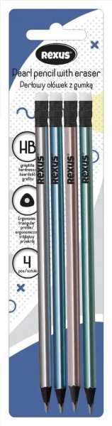 Zestaw zawiera cztery ołówki z gumką, zapakowane na blistrze, co gwarantuje optymalną ochronę przed uszkodzeniem podczas transportu. Ołówki są kolorowe, co dodaje im uroku oraz pomaga w zorganizowaniu przestrzeni roboczej.Trwałe i wygodne w użyciu