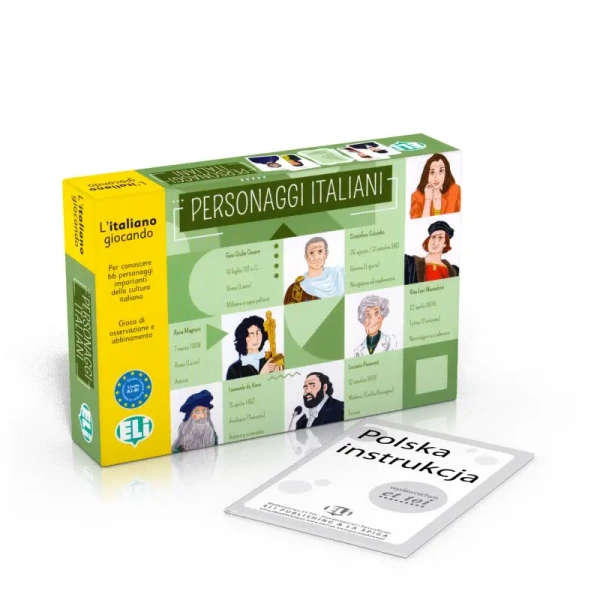 Personaggi italiani to oryginalna gra językowa, która pozwala połączyć naukę z przyjemnością. Jest to nie tylko kreatywny sposób na rozwijanie umiejętności językowych, ale także na pogłębianie wiedzy na temat bogatej kultury Włoch.Gra dla każdego