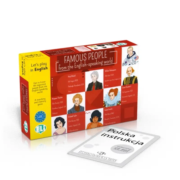 "Famous People from the English-speaking world" to zręcznościowa gra edukacyjna typu memory, pozwalająca uczącym się bawić i jednocześnie pogłębiać swoją wiedzę o kulturze angielskojęzycznej. Celem jest zapoznanie graczy z postaciami znanych osób pochodzących ze świata anglojęzycznego, które znacząco wpłynęły na rozwój sztuki, polityki, nauki, literatury, sportu, muzyki czy filmu. Wielu z nich stało się ikonami popkultury. Instrukcje dostępne są zarówno w języku angielskim, jak i polskim, co ułatwi zasady gry każdemu, niezależnie od poziomu znajomości angielskiego. Gra jest dopasowana do osób na poziomie od A2 do B1.Rozgrywka