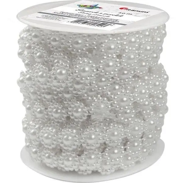 Perełki na sznurku - kwiatki 10m w kolorze białym od Titanum