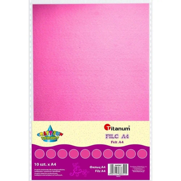 Filc w formacie A4 o grubości 2mm i wadze 200g to idealne rozwiązanie dla osób, które szukają wysokiej jakości materiału do rękodzieła, ozdób czy dekoracji wnętrz. Kolor różyowy sprawi, że Twoje prace będą zarówno wyraziste, jak i pełne uroku. W opakowaniu znajdziesz aż 10 arkuszy, przez co bez problemu wystarczy Ci na większe projekty. Ciesz się wyjątkową jakością i trwałością filcu producenta Titanum!EAN: 5907437686515