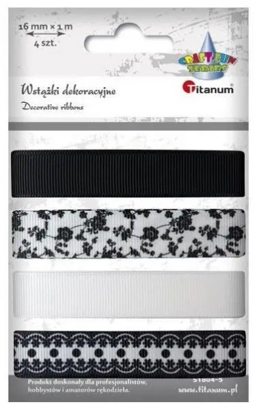 Wstążki rypsowe w zestawie 4 sztuk, każda o długości 1m i szerokości 16mm, to idealne dodatki do różnorodnych projektów kreatywnych, jak dekoracje, ozdoby czy pakowanie prezentów. W pakiecie znajdziesz wstążki w różnych kolorach - biała, czarna, z kwiatowym motywem oraz koronką. Zestaw czterech niezwykle uniwersalnych wstążek rypsowych sprawdzi się zarówno w codziennych, jak i bardziej eleganckich aranżacjach. Wykonane z wysokiej jakości materiałów, niezwykle trwałe i mocne, przez co idealne dla miłośników rękodzieła i twórczych eksperymentów. Kolorowe wstążki z nadrukiem pozwolą urozmaicić każdą pracę i dodać jej indywidualnego charakteru. Natomiast szerokość 16mm gwarantuje idealne wykorzystanie wstążek zarówno przy mniejszych, jak i większych projektach. Odkryj magię kreatywności z zestawem czterech różnorodnych wstążek rypsowych Titanum - świetnym narzędziem dla każdego, kto uwielbia tworzyć!EAN: 5907437721414