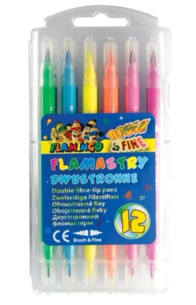 Kolorowe flamastry dwustronne Flamingo z 12 kolorami
