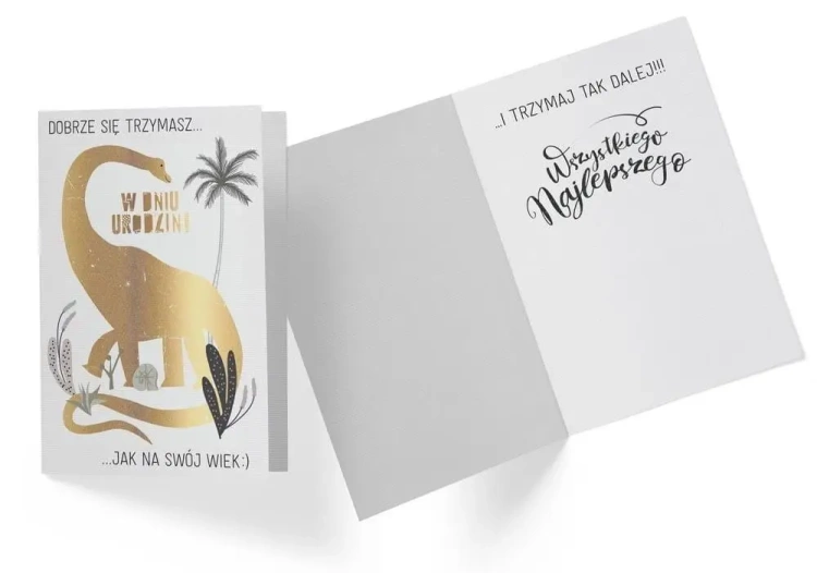 Ten unikalny karnet urodzinowy o wymiarach 11,7 x 16,6 cm został starannie zaprojektowany przez markę Kukartka. Ma standardowy format B6, który charakteryzuje się praktycznym rozmiarem i doskonale sprawdzi się jako urodzinowe życzenia. Karnet został ozdobiony metaliczną folią lub brokatem, na podstawie wybranego wzoru, co nadaje mu niepowtarzalnego uroku i elegancji. Dodatkowo, wewnątrz każdego z karnetów umieszczone są kolorowe życzenia, co dodaje mu personalnego charakteru. Każda kartka posiada również osobną kopertę, dzięki czemu gotowe życzenia możemy od razu wręczyć solenizantowi. Wszystko to sprawia, że karnet urodzinowy B6 PP-2197 - Dinozaur od Kukartka to perfekcyjny wybór dla każdego, kto szuka oryginalnego sposobu na przekazanie urodzinowych życzeń.EAN: 5901924474739