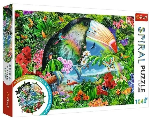 Spiral Puzzle to niezwykła seria, w której znajdziesz zakręcone puzzle o wyjątkowej formie, tworzące fascynujące, spiralne kształty. Odkryj świat dobrej zabawy i podejmij to wyjątkowe wyzwanie, które wciągnie Cię w spiralę emocji! 1040-elementowe Tropikalne zwierzęta to propozycja dla osób, które marzą o egzotycznych przygodach wśród kolorowych zwierząt zamieszkujących tropiki. Po ułożeniu puzzli otrzymasz wspaniały obrazek o wymiarach 683x480 mm, na którym zobaczysz urocze stworzenia z dalekich zakątków naszej planety.Produkt wysokiej jakości