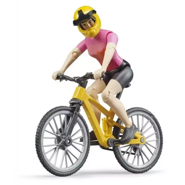 Fantastyczna figurka kolarza z rowerem górskim Bruder