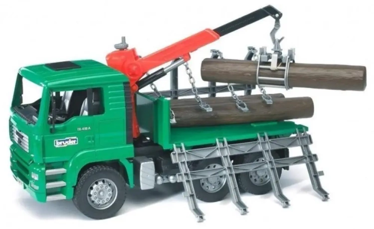 MAN transporter z żurawiem i pniami Bruder 02769 w skali 1:16