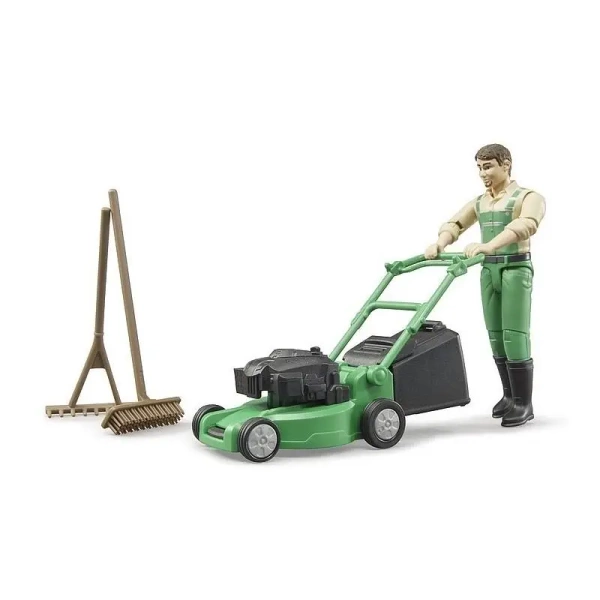 Figurka ogrodnika z kosiarką i akcesoriami - Bruder