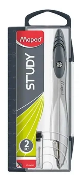 Cyrkiel Study 110 od MAPED posiada metalową konstrukcję, przeznaczoną do użytku z wkładami grafitowymi. Jest on sprzedawany w plastikowym etui, które nie tylko przechowuje cyrkiel, ale również posiada wbudowaną w nim linijkę o długości 12 cm. Dodatkowo, każdy zestaw zawiera zapasowe wkłady grafitowe o średnicy 2mm. Cyrkiel ma czarną główkę, co dodaje mu elegancji. W jednym opakowaniu znajduje się jedno etui z cyrklem i wkładami grafitowymi.