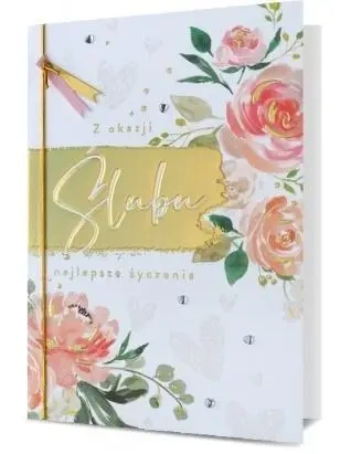 Prezentowany produkt to okolicznościowy karnet kompletowany z kopertą. Idealny na szczególne chwile, takie jak ślub. Wykonany z dbałością o każdy detal, doskonale sprawdzi się jako elegancka forma przekazania życzeń.