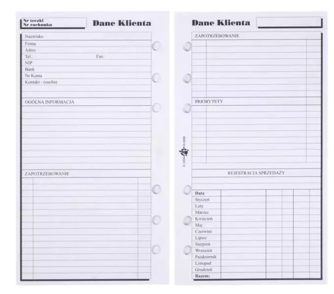 Dodatkowy element do organizera, dokumentujący dane klienta - ST