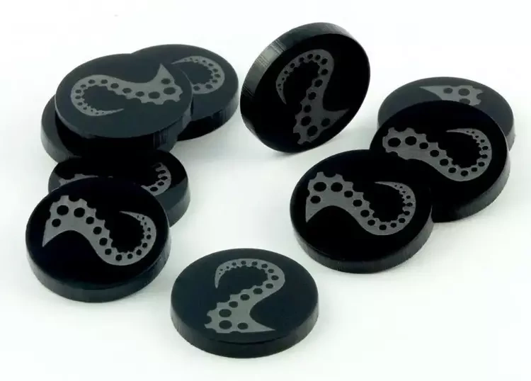 Prezentujemy markery dekorowane motywem macki w wersji pierwszej. Znaczniki są wytwarzane z prostej w pielęgnacji czernej plexi, której grubość wynosi 3 mm. Wymiary znacznika to okrąg o średnicy 22 mm. Komplet zawiera 10 znaczników i jest nieocenionym dodatkiem do różnego rodzaju gier, m.in. bitewnych, RPG, Print & Play oraz prototypów gier planszowych. Doskonale spełnią także rolę zamienników elementów gier czy wprowadzenia modyfikacji zasad gier.Dbamy o każdy detal Sugerujemy delikatne czyszczenie znaczników. Szkło akrylowe nie powinno mieć kontaktu z żadnymi alkoholami. Zalecamy używanie wody z mydłem. W przypadku bardziej istotnego zabrudzenia polecamy skorzystanie z preparatów na bazie cytrusów.