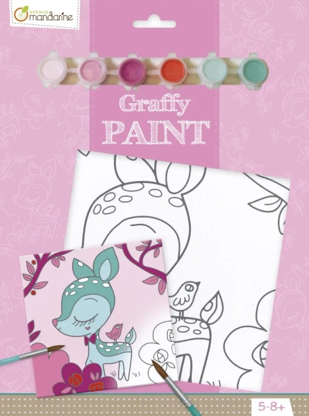 Podobrazie z nadrukiem + farbki + pędzel - Sarenka 20x20 cm - AVENUE MANDARINE