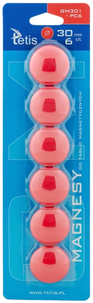 Magnesy do tablic Tetis czerwone gładkie 30mm/6