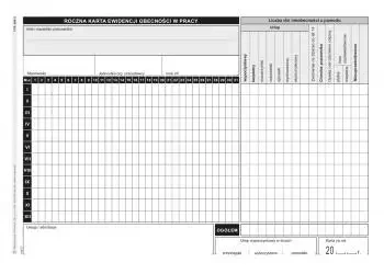 Roczne karty ewidencji 508/3 to doskonałe narzędzie dla każdego działu kadrowego, niezależnie od sektora. Wygodne w użyciu, trwałe i estetyczne - ułatwiają prowadzenie dokumentacji pracowniczej i odznaczają się niezawodnością w codziennym użytkowaniu.EAN: 5906858000627