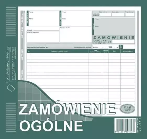 Zamówienie ogólne 333-2 to niezastąpione narzędzie dla wszystkich przedsiębiorców oraz osób prowadzących działalność handlową, magazynową czy materiałową. Dzięki niemu usprawnisz proces ewidencji i kontroli swojego asortymentu oraz zyskasz łatwy dostęp do informacji o zamówieniach i dokumentacji produktów. Twój codzienny biznes stanie się o wiele prostszy!