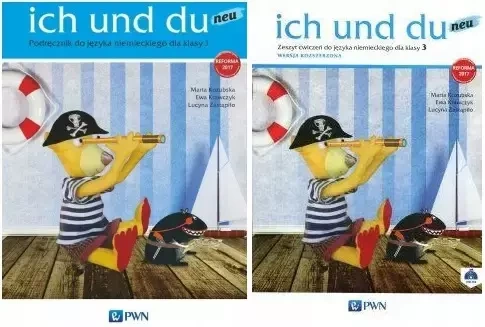 "ich und du neu 3" to wieloletni podręcznik zgodny z nową podstawą programową obowiązującą od września 2017 roku. Kurs jest ceniony przez nauczycieli za ciekawą tematykę, piosenki i pacynkę misia Theo, który pomaga wzbudzić zainteresowanie i motywację uczniów.