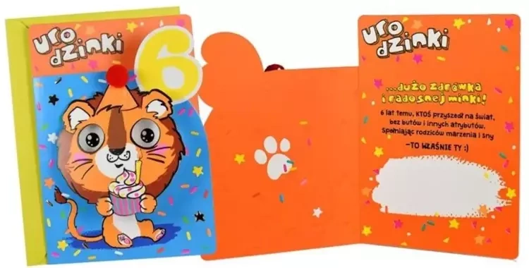 Karnet B6 DK-797 Urodziny 6 lwiątko - Kukartka