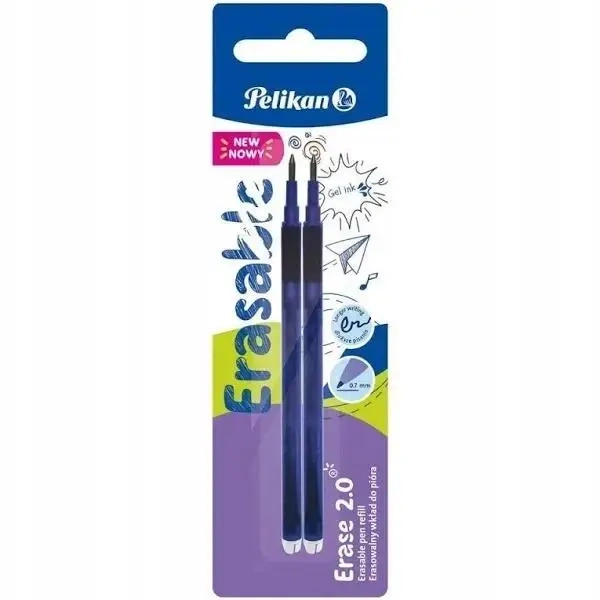 Posiada atrament żelowy oraz miękki uchwyt dla komfortowego pisania. Co wyjątkowe, doskonale się wymazuje, zapewniając czysty dokument nawet po korektach. Grubość linii pisania wynosi 0,7 mm, zapewniając precyzyjne litery i cyfry. Wkład dostępny jest aż w trzech atrakcyjnych kolorach: klasycznym czarnym, eleganckim niebieskim i energetycznym czerwonym. Wygląd wkładu jest spójny z kolorem atramentu, co ułatwia identyfikację potrzebnego koloru. Z wkładem wymazywalnym ERASE 2.0 od PELIKAN, pisanie staje się przyjemnością, a ewentualne poprawki są proste i niewidoczne.EAN: 5901389585001