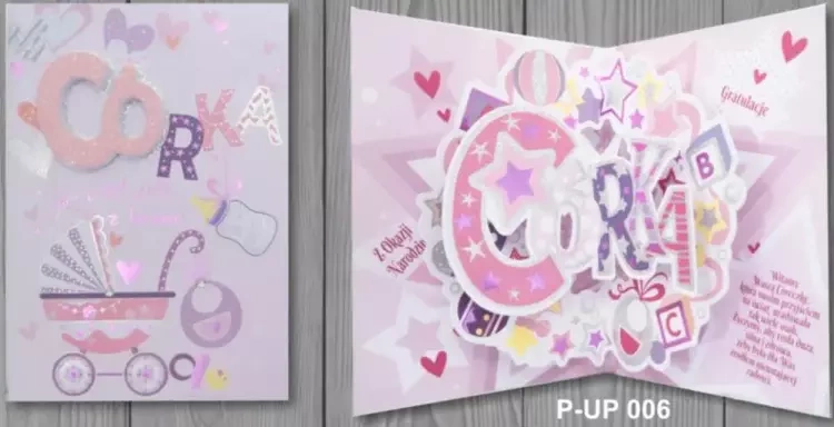 Karnet Przestrzenny B6 Narodziny dziewczynka wózek - Panorama