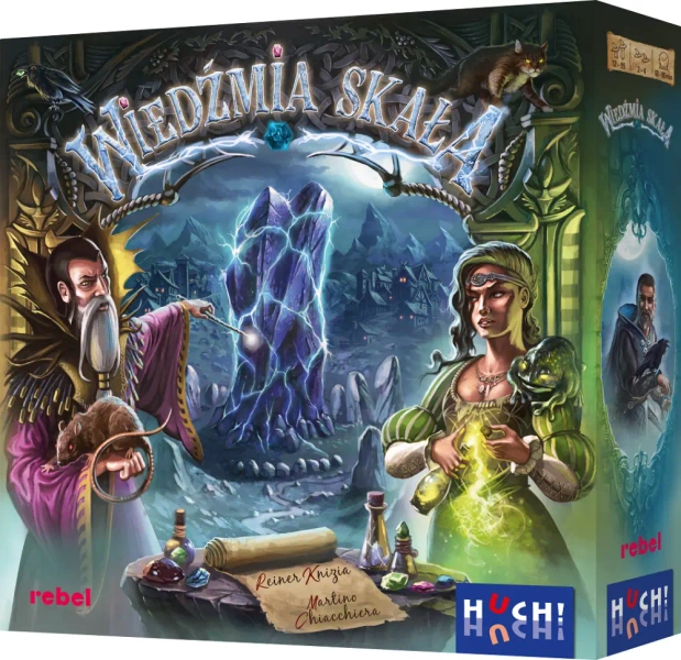 Wiedźmia Skała to strategiczna gra planszowa, gdzie gracze stają się utalentowanymi mistrzami gildii zgromadzonych wokół tajemniczego, starożytnego kamienia. Każdy gracz rozpoczyna swój ruch w jednej z czterech wież. Jest to prawdziwe pole do wykorzystania twojej wyobraźni: mając do dyspozycji kocioł, wykonuj faszynujące zaklęcia i buduj sieć magii wokół kamienia nazywanego Wiedźmią Skałą. Posyłaj swoje wiedźmy w kluczowe miejsca, zbieraj z kociłka magiczne kryształy i czerp korzyści z pentagramu i lśniących różdżek magów. Ale pamiętaj - nie lekceważ potęgi przepowiedni, jeśli marzysz o zwycięstwie! W grze nie zawsze dostępne są wszystkie możliwości, a wyzwanie polega na umiejętnym korzystaniu z okazji, które pojawiają się na twojej drodze. Po 11 emocjonujących rundach, gracz, który zdobędzie najwięcej punktów, odnosi zwycięstwo i tytuł Wybrańca Wiedźmiej Skały. Grida ta jest dla osób powyżej 12 lat, a czas rozgrywki wynosi około 45 minut, co czyni ją idealnym wyborem na wieczór z rodzeństwem lub przyjaciółmi. Zabawa gwarantowana!Cechy gry:
