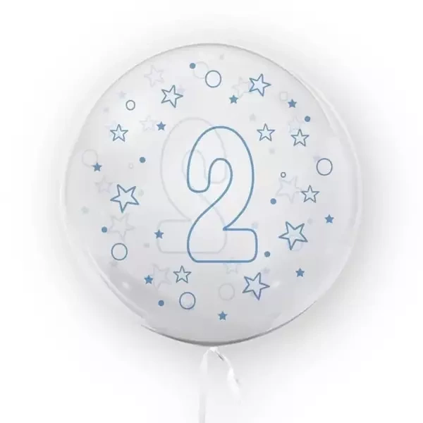 Niemal przezroczysty balon z niebieską cyfrą 2