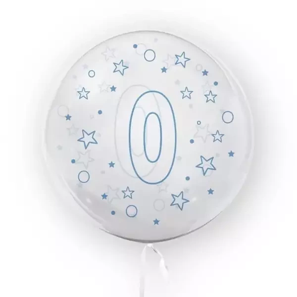 Niebieski balon z gwiazdkami w kształcie cyfry 0