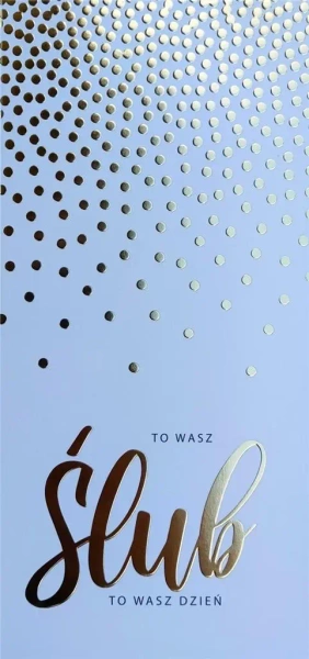 To nie jest zwykły karnet, ale wyrafinowany produkt szczególnie dedykowany na okazję ślubu. Jego elegancję podkreśla brokatowy lakier oraz wysokiej jakości złocenia. Co istotne, w środku karnetu znajdują się życzenia.Prosimy zauważyć: odcień koloru karnetu może delikatnie różnić się od tego widocznego na zdjęciu.