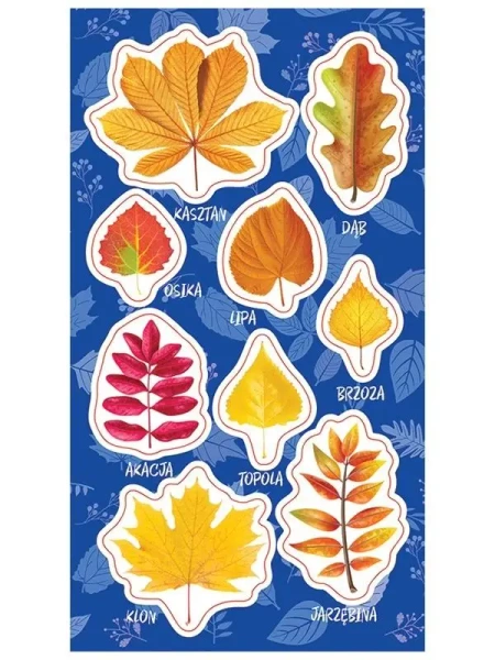 Podkreśl nastrój jesieni dzięki kreatywnemu zestawowi naklejek. W ofercie mamy 9 unikalnych naklejek przedstawiających kształty i kolory jesiennych liści, każda ozdobiona opisem. Idealne do personalizacji zeszytów, albumów, listów lub pocztówek. Wielce rekomendowane dla placówek oświatowych, jako materiał edukacyjny i element dekoracyjny. Wykorzystaj jesienny nastrój, żeby inspirować dzieci do zabawy i nauki.Znakomity dodatek do kreatywności
