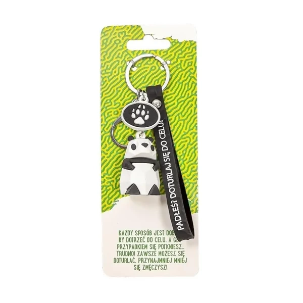 Brelok zwierzaczek panda został dodatkowo wyposażony w silikonowy pasek, na którym widnieje tekst w języku polskim. Swoją uroku dodaje mu również zawieszka w formie odcisku łapy. Końcowy efekt jest naprawdę zachwycający! Obcowanie z takim przedmiotem codziennego użytku, jakim jest brelok, staje się dzięki temu o wiele przyjemniejsze. Idealne rozwiązanie dla osób, które cenią sobie oryginalne dodatki i niebanalny design.EAN: 5903420844665