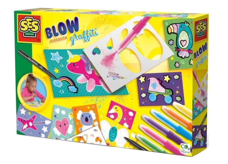 Pozwól swojej kreatywności rozkwitnąć, korzystając z zestawu do malowania graffiti firmy SES NL. W komplecie znajdziesz sześć kolorowych markerów aerografu, dzięki którym stworzysz fantastyczne i żywe dzieła sztuki.Stwórz swoje własne graffiti na gotowych kartach