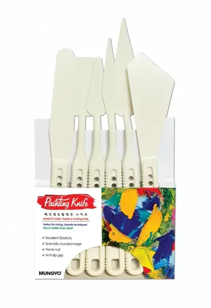 Wyjątkowo trwałe szpachle malarskie wykonane są z elastycznego i odpornej na uszkodzenia syntetycznego materiału. W zestawie dostępne są narzędzia o zróżnicowanych kształtach, które umożliwiają uzyskanie unikalnej struktury w twoich dziełach malarskich. Materiał, którego użyto do wytworzenia tych szpachli, jest odporny na działanie rozpuszczalników takich jak terpentyna, co czyni je idealnym narzędziem do malarstwa olejnego, a także akrylowego czy terpentynowego. Szpachle te przede wszystkim wykorzystuje się do nanoszenia, mieszania i rozsmarowywania farby na obrazie. Pozwalają one na nałożenie grubej warstwy farby na płótno i nadanie jej specyficznego, trójwymiarowego efekty. Wszystko zależy od wielkości i formy użytej szpachli, co pozwala na uzyskanie różnorodnych efektów w zależności od preferencji autora. Szpachle umożliwiają również uzyskanie wyrazistych granic między różnymi kolorami. Produkty te charakteryzują się wysoką trwałością, są solidnie wykonane z materiałów najwyższej klasy. Dostępne są w różnych rozmiarach i kształtach, a odpowiednio konserwowane mogą służyć przez długie lata. Szpachle można łatwo utrzymać w czystości, ponieważ pozwalają na całkowite mycie i czyszczenie. Duży nacisk położono również na praktyczność tych narzędzi - posiadają one elastyczne ostrza oraz ergonomiczne, funkcjonalne uchwyty.EAN: 8807093300015