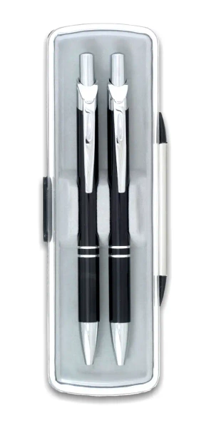 Zarówno długopis jak i ołówek charakteryzują się korpusami zbudowanymi z aluminium, a wszystkie metalowe elementy są chromowane na efektowny wygląd.