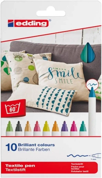 - Marker do tkanin Edding oferuje trwałe i niespieralne ozdabianie większości jasnych materiałów takich jak bawełna, jedwab i len