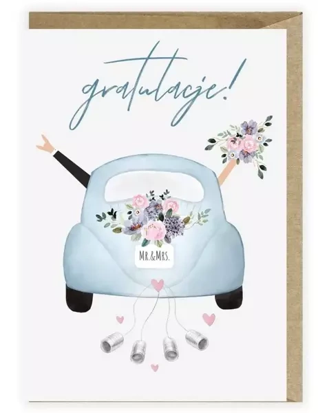 Kartka ślubna, eko koperta Samochód ślubny K108 - Cardie