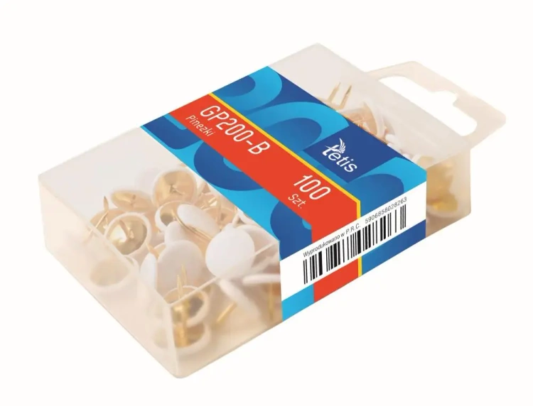 Pinezki Tetis to wysokiej jakości produkty wykonane z stali nierdzewnej, dzięki czemu są trwałe i wytrzymałe. Charakteryzują się estetycznymi metalowymi główkami, które zostały pokryte białym plastikiem. Nie tylko spełniają swoje podstawowe funkcje, ale też doskonale prezentują się w każdym miejscu. W zestawie otrzymasz 100 sztuk białych pinezek Tetis, co pozwoli Ci na korzystanie z nich przez długi czas oraz ozdobienie tablicy, papieru czy materiału w łatwy i przyjemny sposób. Szukając praktycznych i efektownych pinezek, postaw na białe pinezki Tetis!EAN: 5906858028263