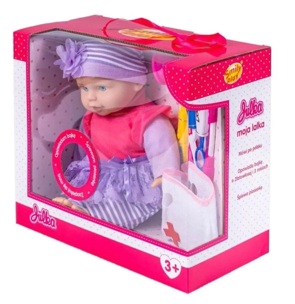 Prezentujemy sensoryczną lalkę Julka firmy Smily Play - idealny prezent dla małego lekarza, który marzy o opiece i leczeniu swojej ulubionej laleczki. Julka złapie od razu serce każdego dziecka dzięki swoim funkcjom mówienia, śpiewania i opowiadania bajek. Ubierz Julkę w czapkę oraz kombinezon z baskinką, a następnie wspólnie odkrywaj fascynujący świat opieki zdrowotnej. Zabawki rozwijające Lalka Julka uczy dzieci zdrowego stylu życia oraz dbania o siebie i innych. Wykorzystanie zabawkowych akcesoriów lekarskich pomaga w rozwijaniu małej motoryki oraz poprawie precyzji ruchów. Podczas zabawy maluch angażuje swoje zmysły, co jest niezbędne do prawidłowego rozwoju. Wszechstronny zestaw akcesoriów Lalka Julka posiada różne akcesoria niezbędne do jej badań. Wszystko można przechowywać w torebce z uchwytami w kształcie serca. Zestaw zawiera miękką lalkę, torebkę, stetoskop, bezpieczne lusterko, szpatułkę oraz termometr.Funkcje lalki Julka