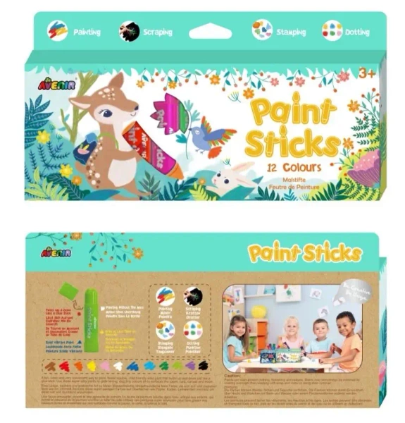 Przedstawiamy nowy, kreatywny sposób na zabawę dla najmłodszych. Te jasne, bezpieczne do użytku i wytrzymałe farby działają jak klej w sztyfcie, dając maluchom możliwość łatwego kontrolowania procesu malowania. Stosowanie tych miękkich i gładkich farb pozwala na uzyskanie żywych i jaskrawych odcieni na różnych powierzchniach, takich jak papier, karton, płótno czy drewno. Farby w sztyfcie szybko schną - proces wysuszenia trwa mniej niż 60 sekund, co pozwala na malowanie bez powodowania bałaganu. To idealny podarunek dla każdego dziecięcego artysty. Zestaw zawiera 12 barwnych sztyftów. Wymiary opakowania to 15 x 11 x 2 cm. Produkt przeznaczony jest dla dzieci w wieku powyżej 3 lat. Nr katalogowy: BTS196009.Produkt od renomowanego producenta Avenir.