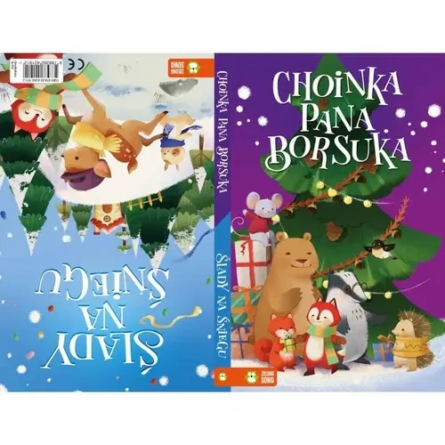 „Choinka pana Borsuka” i „Ślady na śniegu” to dwie oddzielne wierszowane opowiastki dla najmłodszych dzieci zawarte w jednym boardbooku.