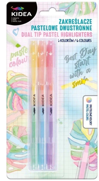 Zakreślacze pastelowe dwustronne 6 kolorów KIDEA - DERFORM