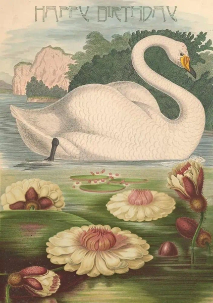Karnet B6 Urodziny Łabędź z kopertą, stworzony w UK