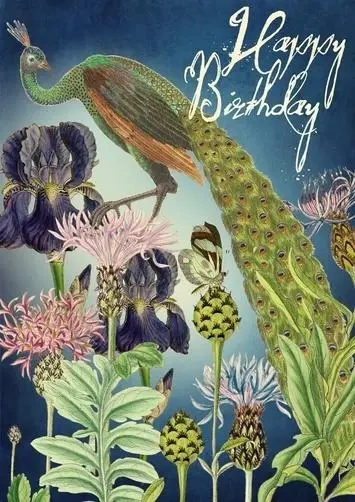 Karnet B6 Urodziny Paw i motyl z kopertą - import z Wielkiej Brytanii