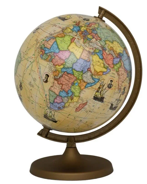 Globus ukazujący ścieżki wielkich odkrywców o średnicy 22 cm