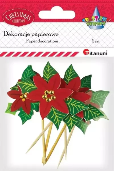 Papierowe ozdoby 3D na piku poinsecje 6szt - Titanum