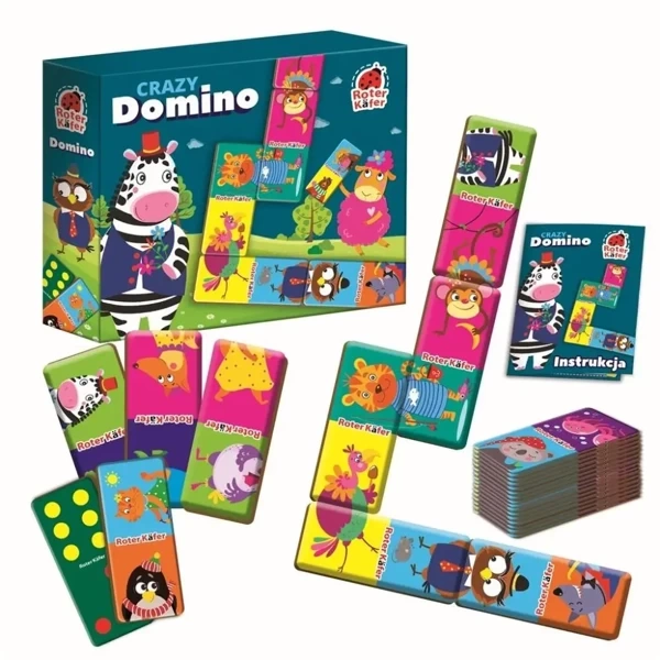 Crazy Domino od Roter Käfer to solidność wykonania. Elementy zestawu to mocna tektura tworząca kompaktową całość. Gra idealnie nadaje się do zabrania w podróż - nie zajmuje wiele miejsca, a dostarcza wielu godzin zabawy.Wzbogacanie umiejętności poprzez grę