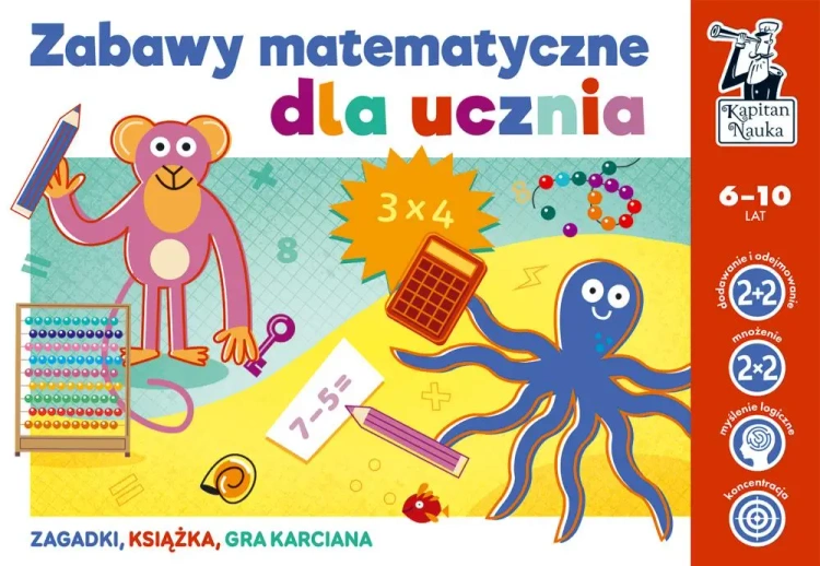 Zabawy matematyczne dla ucznia (6-10) to niezawodny zestaw utrzymania dzieci motywatione do nauki matematyki przez zabawę i wyzwanie. Komplet zawiera kartę z tabelą mnożenia, obrazkowe zagadki oraz książka z różnymi zadaniami zaprojektowanymi w efektywny sposób. Te różne metody zapewniają interesujący trening umiejętności matematycznych bez monotony i uciążliwego powtarzania.Matematyka bez Monotonii
