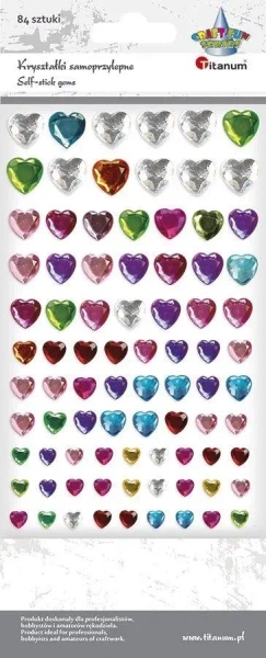 Kryształki samoprzylepne serca mix 84szt - Titanum