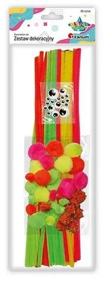 Zestaw druciki, pompony, oczka neonowy 80szt - Titanum